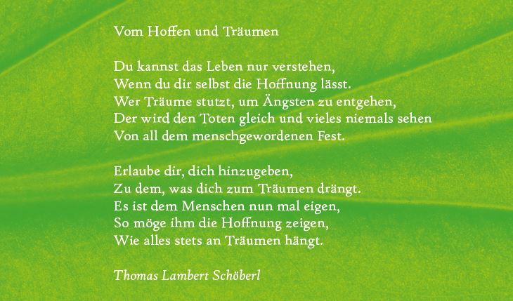 Thomas Lambert Schöberl: Grüne Seelen. Über die Weisheit der Natur: Aus der (Lebens-)Praxis eines Heilpraktikers. Mankau Verlag, 1. Auflage Februar 2021, Klappenbroschur, 13,5 x 21,5 cm, 318 S., 18,95 Euro (D) / 19,50 Euro (A), ISBN 978-3-86374-598-1.