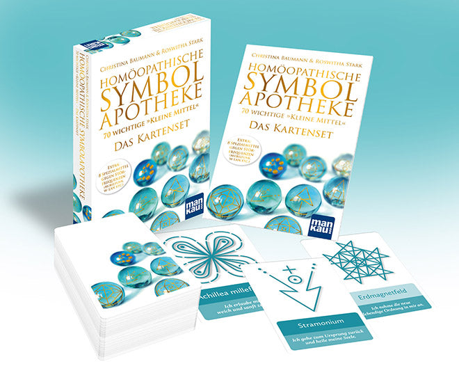 Christina Baumann und Roswitha Stark haben sich seit vielen Jahren auf die Heilkraft von Symbolen spezialisiert. Auch viele andere Bereiche der Schwingungsmedizin wurden von ihnen erforscht und in der Praxis getestet. Ihr neues Kartenset stellt 78 weitere Symbolmittel zur Verfügung: 70 wertvolle „kleine Mittel“ der Homöopathie sowie acht Spezialmittel zur Harmonisierung problematischer Störfrequenzen der digitalen Zeit. Dabei bieten die Symbol- und Testkarten praktische Möglichkeiten für die gezielte oder intuitive Mittelwahl – zur eigenständigen Verwendung oder auch als nützliche Ergänzung zum gleichnamigen Buch.