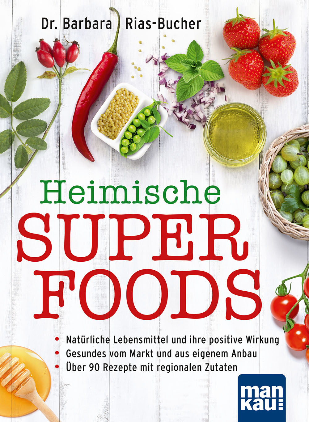 Dr. Barbara Rias-Bucher: Local superfoods. Natural foods and their positive effects / Healthy products from the market and home-grown / Over 90 recipes with regional ingredients. Mankau Verlag, 1st edition 2015, paperback, full color, 222 pages, 17.95 euros (D) / 18.50 euros (A), ISBN 978-3-86374-240-9.