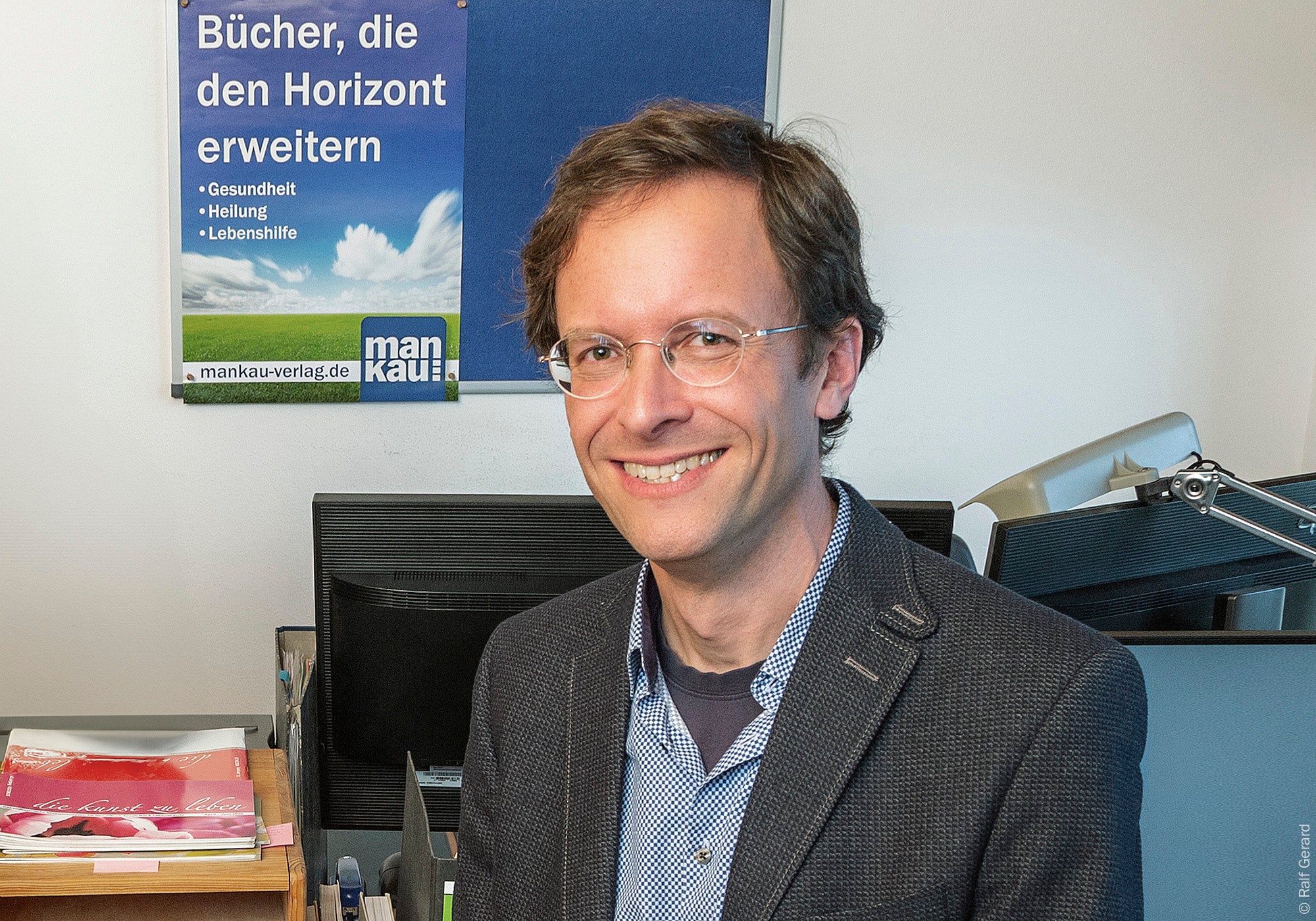 The founder and managing director of the publishing house is the graduate economist Raphael Mankau. Between 1997 and 2006, Mankau worked as the editor-in-chief of the magazine ÖkologiePolitik, and while still a student he founded the Regensburg internetfabrik in 1998 with fellow students. In 1999, he founded an editorial office with a focus on print editing, internet editing and press work, which was incorporated into the Mankau Verlag in April 2004, which was then still based in Murnau am Staffelsee.